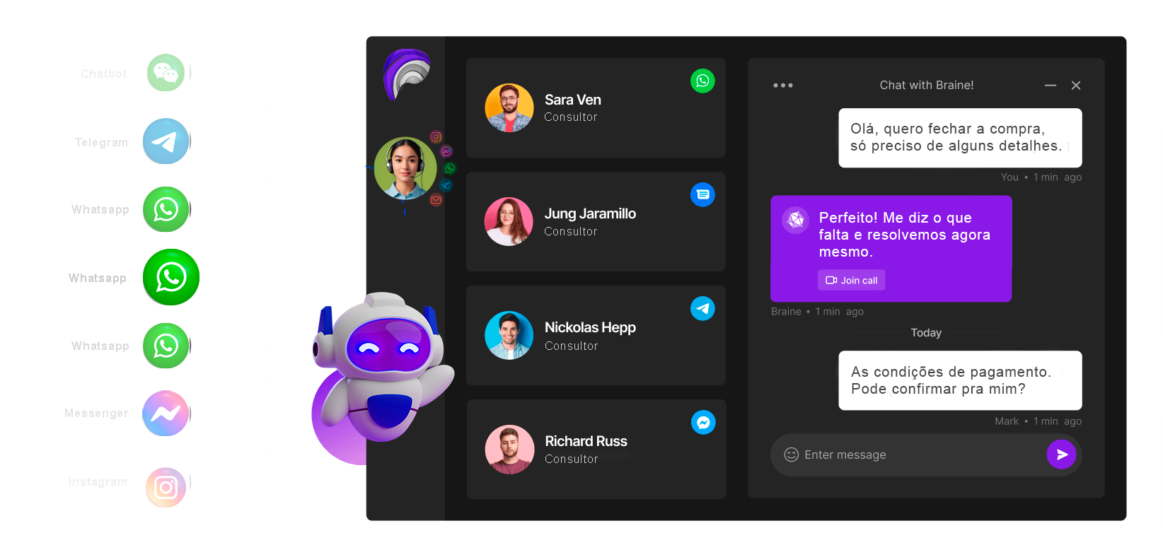 A solução completa para gerenciar múltiplos atendentes no WhatsApp, Instagram e mais, 24 horas por dia, 7 dias por semana, até nos feriados!